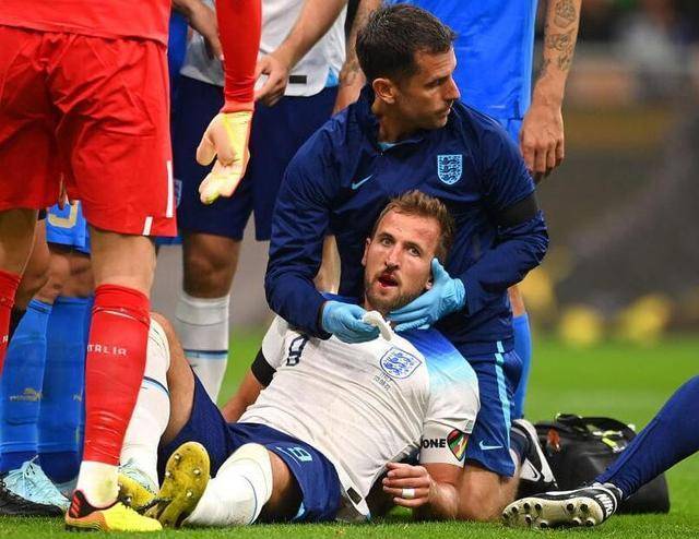 因此,球员如果出现鼻梁肿胀异常,多数情况下都会直接安排球员下场,防止呼吸受影响。像今年9月欧国联一场比赛,英格兰0-1不敌意大利,下半场开始不久,凯恩头球攻门时与对手相撞,口鼻地方出现血迹,随后队医紧急登场处理,球员止血以后还是踢完了全场。
