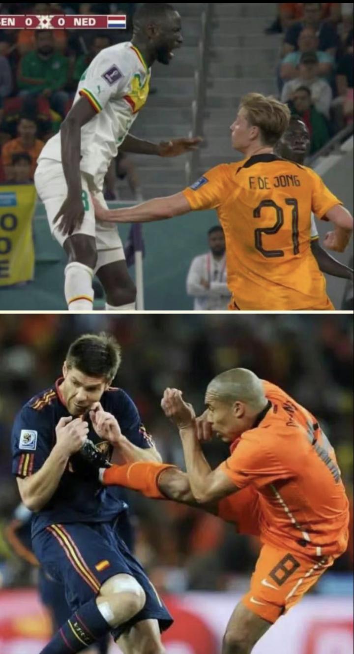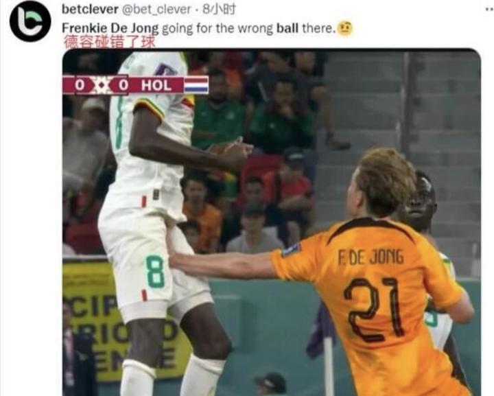 今日图评丨德容“龙爪手”引球迷吐槽:世界最佳“控...足球推文 @懂球帝2022-11-22 15:06今日图评丨德容“龙爪手”引球迷吐槽:世界最佳“控球”大师,抓错球了... 荷兰2比0塞内加尔的比赛中发生了一次博眼球的犯规,荷兰德容与库亚特拼抢一个高球,前者直接击打了库亚特的裆部,这一次的“猴子偷桃”非常明显,不禁让人想起小时候看《鹰爪铁布衫》最后一击那个鸡蛋…… 随后,库亚特无法继续坚持比赛,被担架抬下,他疑似出现了拉伤的情况。 而德容的这一动作也被网友们玩坏了……展开更多