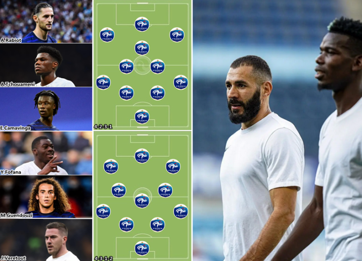 (图)博格巴和本泽马相继伤退,法国中场控制力下降,战略重心向边路转移是必然的。楚阿梅尼和拉比奥的身边没有可靠的第三中场,容纳四名前场攻击手的4231阵型比较合适。