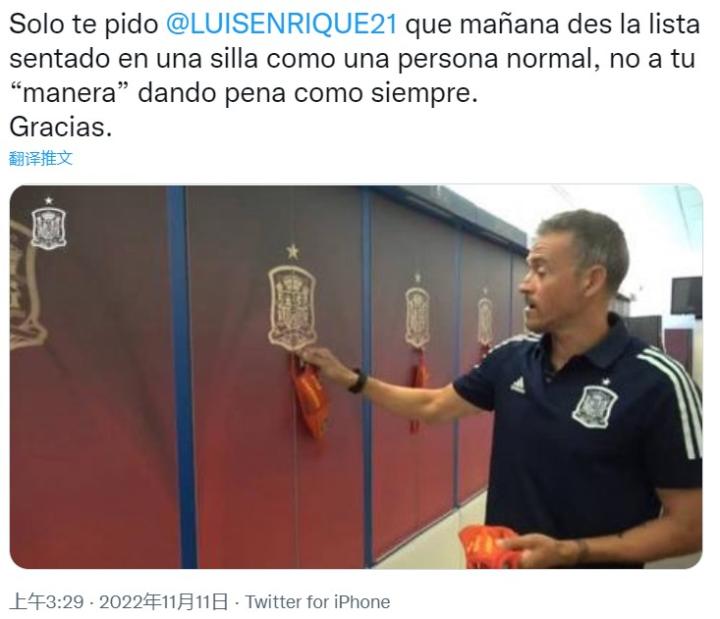 之前的每次国际比赛日,西班牙的官宣大名单方式就已经成为了一大亮点,以至于西班牙球迷在世界杯名单官宣前都在吐槽:“恩里克,我求你了,明天你能不能像个普通人一样坐在椅子上把西班牙大名单官宣了,别整你那些花里胡哨了。”