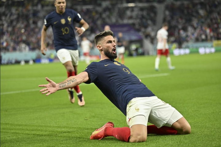 淘汰赛对阵波兰,吉鲁再度展现出了“中锋本色”,他始终是波兰禁区中最大的威胁,在为高卢军团首开纪录之后,还在反击中保持头脑清楚策动了姆巴佩扩大比分的进球,甚至在防守时还能撤回的本方半场协助。