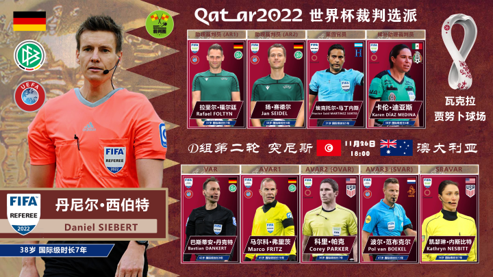 世界杯第7比赛日裁判选派:马宁三度出任四官,执法法国丹麦