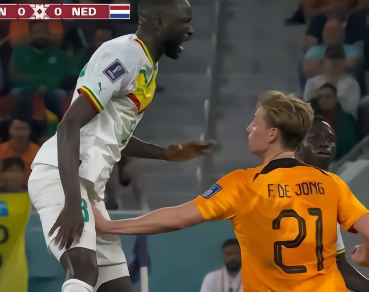 在荷兰和塞内加尔的比赛,8号效力于英超诺丁汉森林的库亚特就遭到了德容的小手段,被搞得直接喊了出来:裁判,他欺侮我!此时德容却因为手法隐蔽,逃过了处罚。