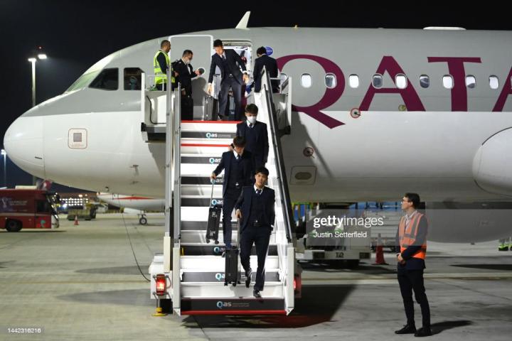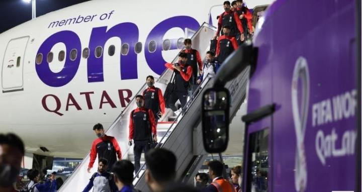 当地时间11月15日,韩国队全员身着运动服抵达多哈,从照片来看,韩国队的球员们都穿着耐克赞助的红黑相间的运动外套,教练组工作人员都穿着蓝灰色运动外套。