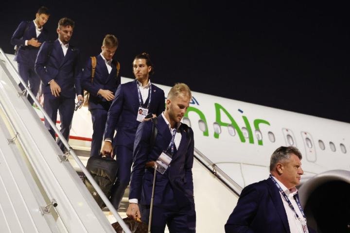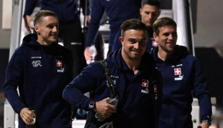 当地时间11月14日,瑞士队抵达卡塔尔多哈。下机时,他们都穿着彪马赞助的深蓝色带帽运动外套,前利物浦前锋沙奇里表情轻松,仿佛已经为世界杯做好了准备。