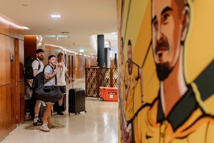 澳大利亚国家队于11月14日抵达卡塔尔多哈,在着装方面,澳大利亚球员们没有统一的着装要求,都穿着自己的便服,以运动休闲风为主。相比严肃正经的抵达照,你会喜欢这种轻松休闲的风格吗?