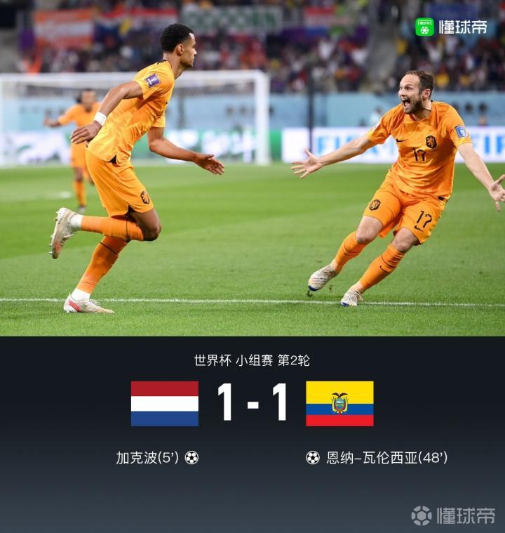第48分钟,埃斯图皮尼安远射被诺珀特扑出,瓦伦西亚门前补射破门扳平比分,荷兰1-1厄瓜多尔!