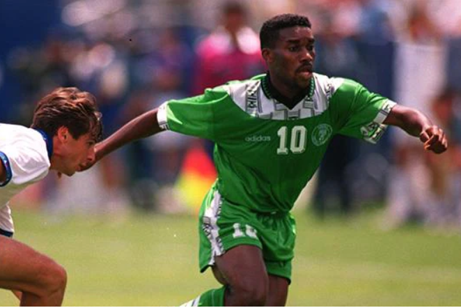 (图)尼日利亚队在1994年世界杯与保加利亚的赛前