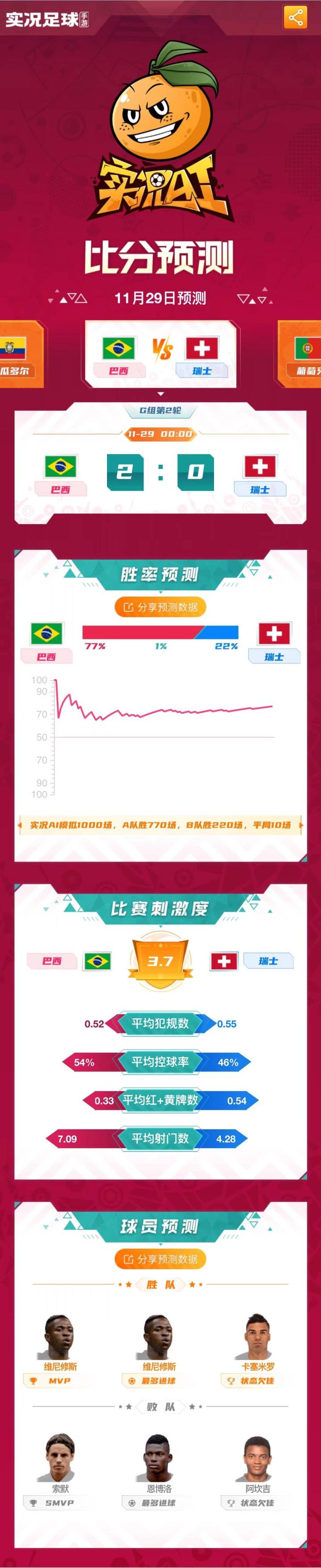 实况AI丨今日世界杯:巴西对阵瑞士,葡萄牙迎战乌拉圭