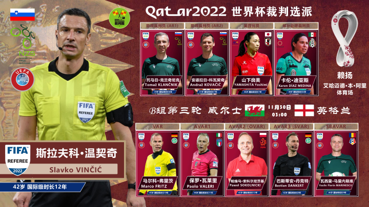 世界杯第3轮裁判选派:“小公举”执法美伊之战,温契奇二刷