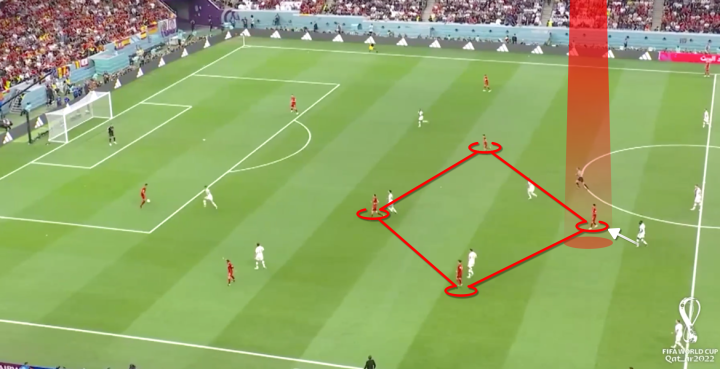 西班牙队在体能充沛时高位逼抢执行得很到位,三线之间能保持很紧凑的距离,对手对后卫线的冲击次数较少,首场比赛哥斯达黎加对西班牙后防线的冲击微乎其微,世界杯新选择的中后卫组合拉波尔特和罗德里在本场比赛后半段才迎来真正的考验,罗德里去年在俱乐部的比赛中也客串过中后卫,不过他的踢中卫的优势和劣势都很明显。