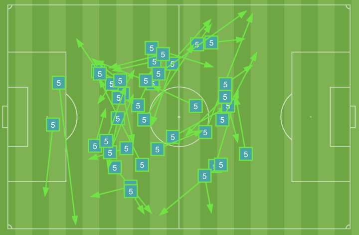 在德国队的限制下,布斯克茨向前的传球相对较少
