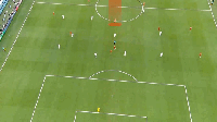 西班牙同样采取高位逼抢,德国队的应对方法则相对更加直接,相较于西班牙更多横向的传导德国队的进攻更加利用纵深,格雷茨卡的前插和穆西亚拉的突破是上半场德国队面对西班牙防守时最有效的手段。