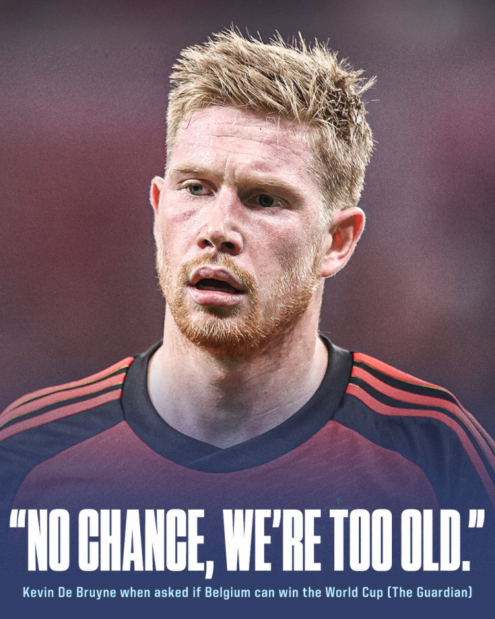 对阵摩洛哥的关键比赛之前,《卫报》发布了一篇世界杯前的长篇专访,德布劳内在采访中表示:“(比利时)没有机会(夺冠),我们太老了。”