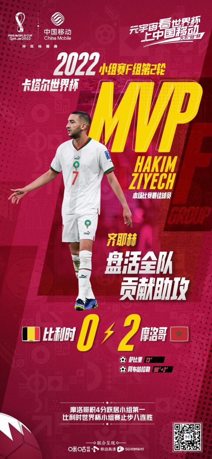 对阵比利时的比赛,齐耶赫就成为了摩洛哥绝对的大腿,他不仅最后时刻送出助攻,还9次赢得对抗,完成两次关键传球,打进一粒无效的定位球,赛后也被官方评为全场最佳。