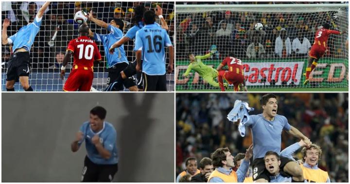 苏亚雷斯的手球成为本场的转折点,加纳队士气受挫,进入点球大战后,神勇的穆斯莱拉站了出来,乌拉圭人时隔40年闯入四强。