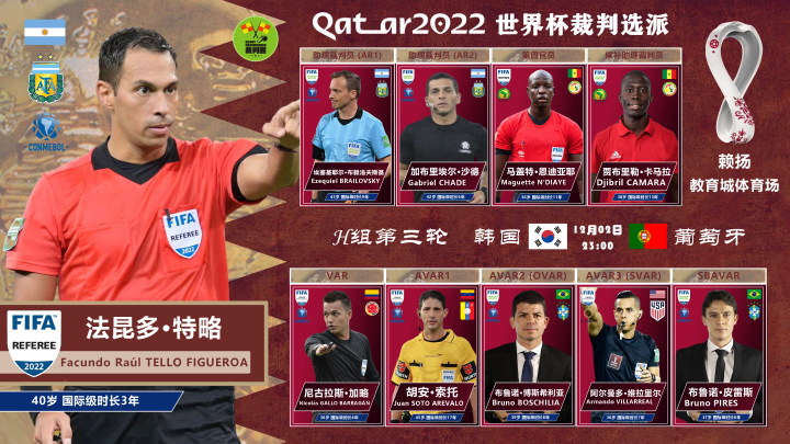 世界杯小组赛第3轮(第13比赛日)裁判选派