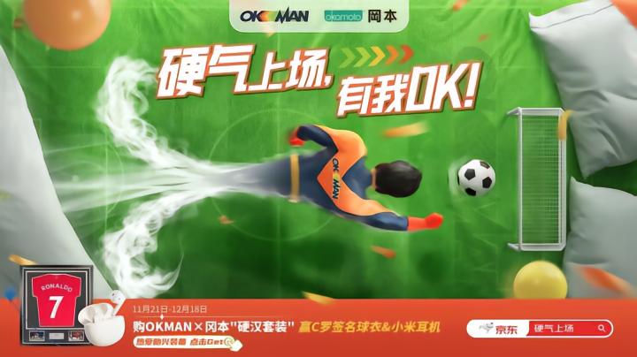 也可打开京东搜索【硬气上场】,购买OKMAN x冈本硬汉套装,就有机会赢取C罗签名正品球衣。