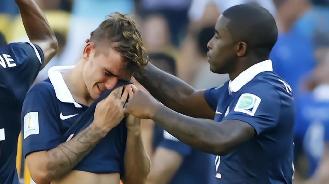 0-1的比分保持到了中场,格列兹曼赛后痛哭流涕的镜头也让人印象深刻,曼加拉和博格巴等同样年轻的队友上来安慰,却止不住阿尔萨斯少年的泪水。