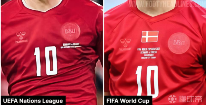 随着比赛的打响,大家发现丹麦队的“纯色球衣”被强迫加了国旗,根据媒体的推测,这可能也与国际足联的强制性要求有关。