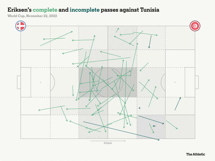 (图)埃里克森对突尼斯时的传球统计显示了突尼斯人的防守是如何对他进行限制的——他很少传球到有威胁的进攻三区
