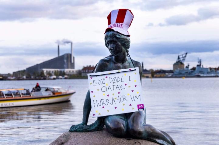 (图)反对卡塔尔世界杯的抗议活动在丹麦随处可见