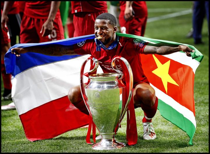 那些耳熟能详的名字中,包括有帮助荷兰夺得1988年欧洲杯的三剑客之二古利特和里杰卡尔德,亦有1995年阿贾克斯称霸欧洲时的戴维斯、雷兹格尔、博加德、西多夫以及克鲁伊维特。还有曾在英超效力的哈塞尔巴因克、维纳尔杜姆,后者在2019年随利物浦拿到欧冠后身披荷兰和苏里南拼接的国旗庆祝。