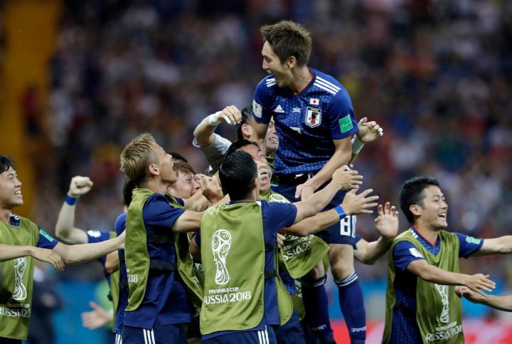1-0战胜俄罗斯,日本队赢得了世界杯赛场上的第一场胜利,举国欢庆。