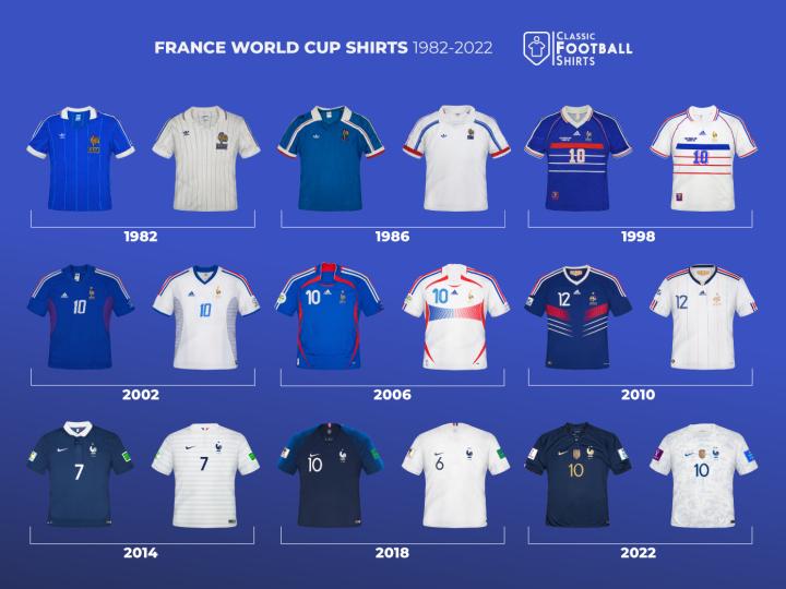 1982-2022世界杯法国主客场球衣, 你印象最深的是哪件?
