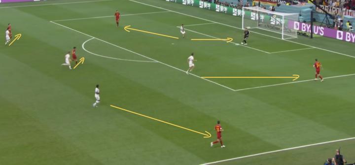 60分钟过后,体能下降+3人染黄+对方中锋上场,德国无法再像上半场一样保持紧密性和高强度对抗,场面逐渐拉锯,机会开始显现。
