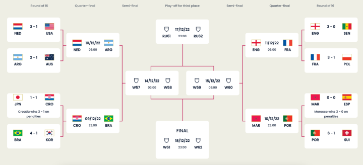 考虑到阿根廷和摩洛哥的情况,两支球队想要在各自半区突出重围难度颇大。前者需要连克荷兰以及巴西和克罗地亚之间的胜者,才能晋级决赛,而摩洛哥则需要先过葡萄牙这一关。
