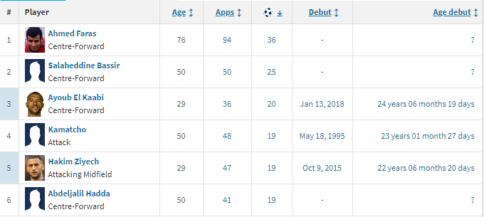 历史进球数:摩洛哥国家队历史射手王是现年已经76岁的法拉斯,这位传奇射手在96次国家队出场中打进了36个进球。
