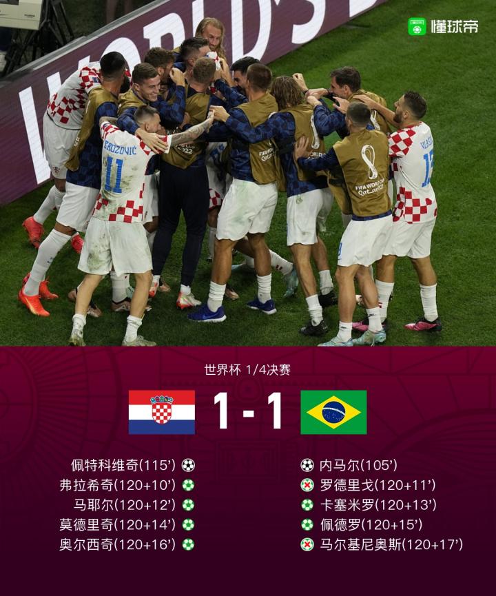 壳牌喜力丨战报:克罗地亚5-3点杀巴西晋级,利瓦科维奇扑点
