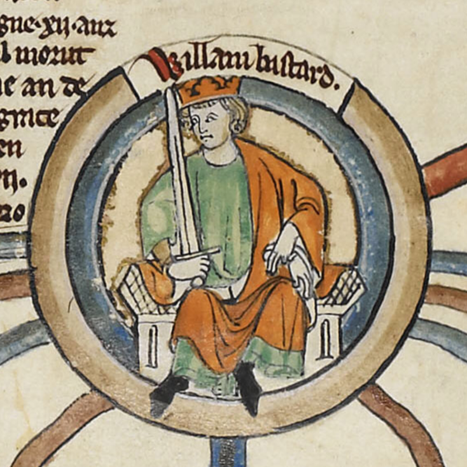 这个人叫威廉,是诺曼底公爵。诺曼底地区位于今天法国的西北部,就是“诺曼人之地”的意思。所谓诺曼人,就是“北方人”的意思,指的是起源于北欧的古代民族,属于维京人的一支。他们在10至11世纪征服了法国西北部的这片区域,宣誓效忠于西法兰克王国,其首领获得了诺曼底公爵的爵位。