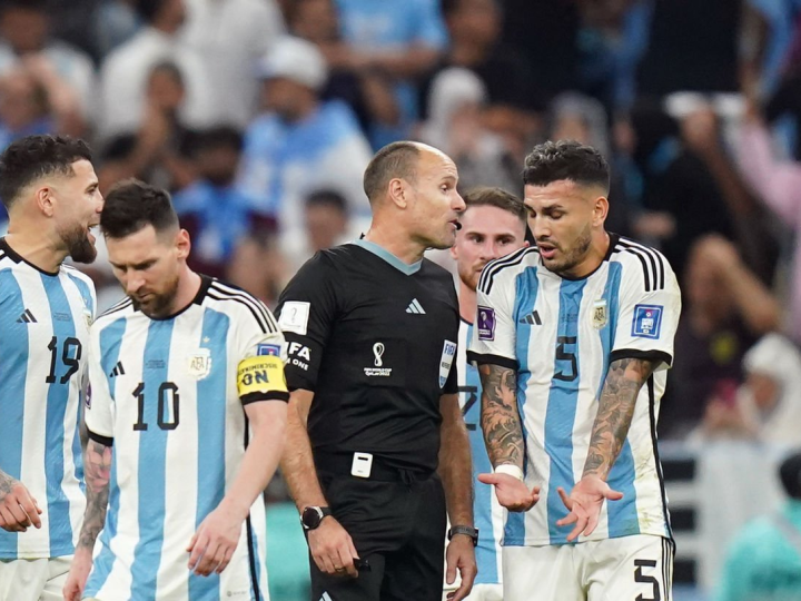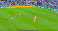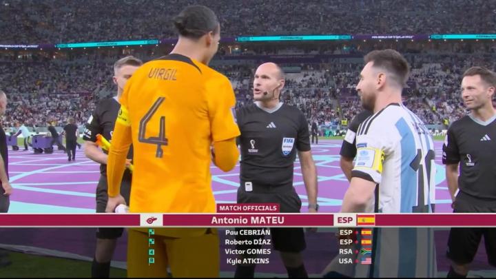 第70分钟,阿根廷队8号阿库尼亚带球突入对方罚球区,被荷兰队22号邓弗里斯绊倒。这是次非常明显的犯规行为,马特乌立即响哨判罚了点球,VAR经过静默核查也认定无明显点球错判。