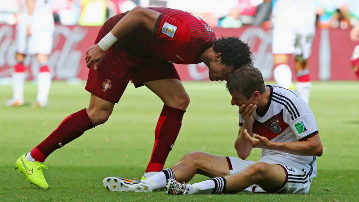 C罗、佩佩、科恩特朗,葡萄牙队此时的阵容已稍有起色。然而尴尬的是,左膝的严重伤势极大地限制了C罗的发挥,再加上佩佩在第37分钟的鲁莽红牌,葡萄牙队首战即0比4大败于德国。当葡萄牙全队回到酒店时,等待已久的球迷向他们高呼:“该醒醒了!”