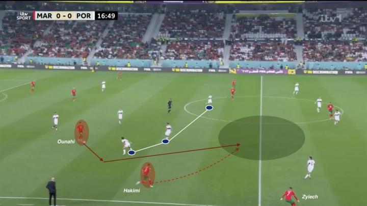在比赛60分钟阶段,摩洛哥人完成了10次成功地持球冲击,并转化为八次射门机会。