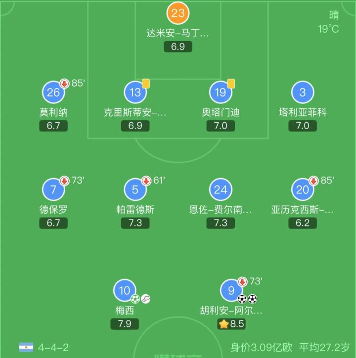 之后斯卡洛尼在73分钟换帕拉西奥斯下德保罗一是为了稳固防守,二是为了决赛的准备;换上迪巴拉下阿尔瓦雷斯,一说明阿尔瓦雷斯很可能决赛继续首发,二是为了让迪巴拉有点状态,为决赛可能落后的预案。