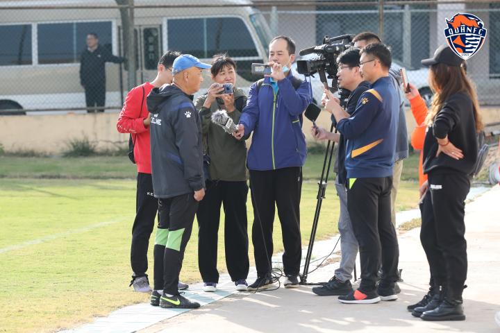 青岛市广播电视台节目中心体育部主任矫韶辉,11月28日当天带领直播团队,在俱乐部第二现场,见证了球队冲超的喜悦场景,作为一名资深媒体人,“有了些年纪”的他,激动的样子不亚于年轻人。“几十年媒体人了,当年看着球队从中超降到中甲,又降到中乙,作为一个首先是球迷的媒体人,说实话真是很气愤,一度对球队失去了信心,觉得看不到希望,觉得当时乔总说的一定会回来只能是个神话。然而事实让我打脸了,球队2021、2022两个赛季的惊艳表现,就让这个不可能的神话成为了现实,我在惊喜的同时,由衷佩服乔总的坚持、执着和勇气!海牛创造了中国足球的历史,赢得了大家的尊重,我相信青岛足球必将浴火重生,再创辉煌!”