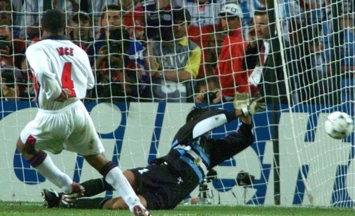 1998年世界杯中,英格兰在少一人的情况下将阿根廷拖入到点球大战,因斯和巴蒂的失点让雄心壮志的三狮军团沉沦法国。