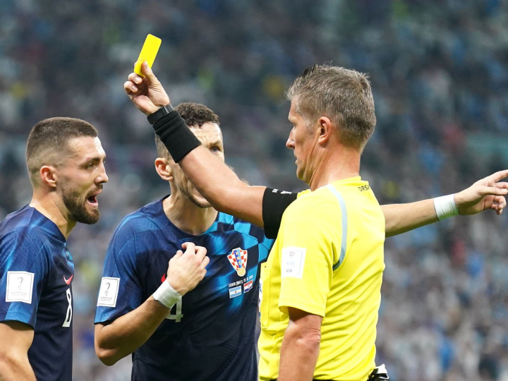 本场比赛还有些其他值得一提的事件,我们一起来复盘。第5分钟科瓦契奇带球推进时被对手铲倒,奥萨托见克罗地亚队员还在持球进攻便掌握了攻方有利,但在随后判罚了克罗地亚队员在中线附近的犯规,这也引发了他们的不满,奥萨托随即口头劝诫了上前抗议的球员,没有向任何人出牌。