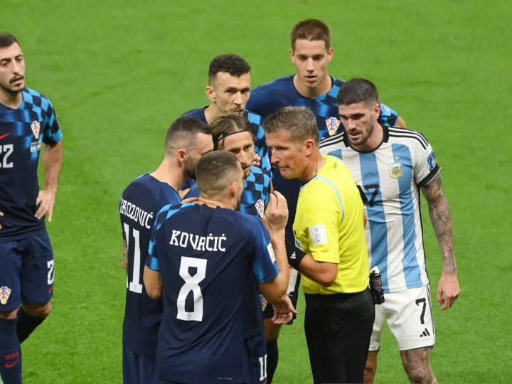 裁判圈本场半决赛最大的争议出现在第31分钟,阿根廷队9号阿尔瓦雷斯单刀将球挑过克罗地亚门将利瓦科维奇之后被对手放倒,奥萨托判罚了“黄点套餐”,大家随即对这次判罚展开了相当热烈的讨论。