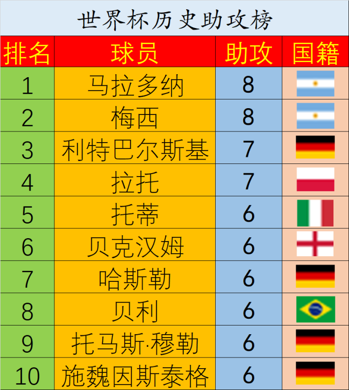 恭喜梅西成为世界杯历史助攻王!阿根廷世界杯射手榜...日不落的爱恋 @懂球帝2022-12-14 15:51恭喜梅西成为世界杯历史助攻王! 阿根廷世界杯射手榜:梅西11球超越巴蒂独占榜首 世界杯历史射手榜:梅西追平克林斯曼、柯奇士 世界杯历史助攻榜:梅西8助追平老马并列第一展开更多