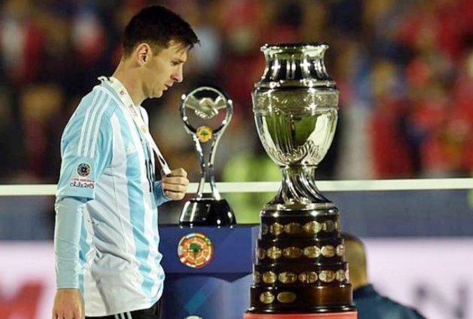 2016年6月26日,百年美洲杯决赛对阵卫冕冠军智利,在点球大战中失点,阿根廷最终在点球大战中2-4负于对手,连续第三年在国家队大赛中屈居亚军。出场5次,贡献5球4助,助攻数位居赛事第一,个人3次荣膺全场最佳球员,并入选赛事最佳阵容。决赛结束后,梅西宣布退出国家队,为失利揽责。