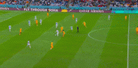 开场以后荷兰发现自己的进攻方式基本被限制了,边路传中没有空间,中路包抄抢点没优势,拼脚下技术,发现对面是一群技术球员把自己当工兵。阿根廷则很有耐心地和对手消耗完前20分钟,由梅西率先发力,先是靠脚下过掉阿克后内切,随机奖励一名幸运观众,随后就来到了这种上帝视角的助攻。