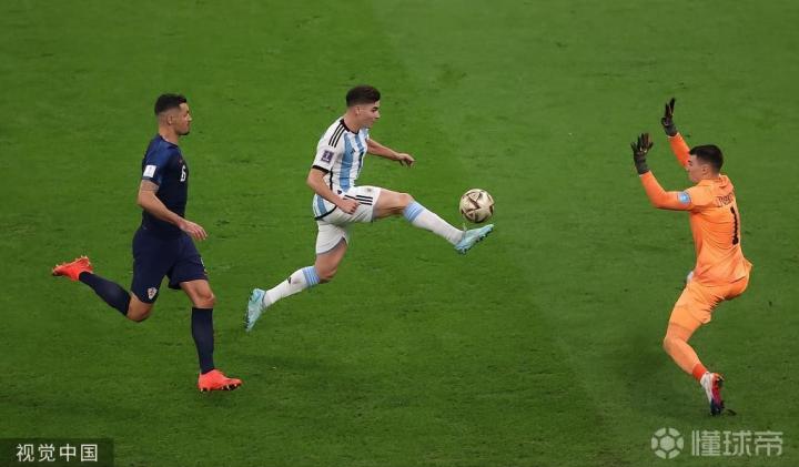 天平从这一刻开始有了倾斜,仅仅5分钟后,梅西转换进攻将球传出,“小蜘蛛”阿尔瓦雷斯千里走单骑杀入禁区,势不可挡地将球送入球门。阿根廷2-0。