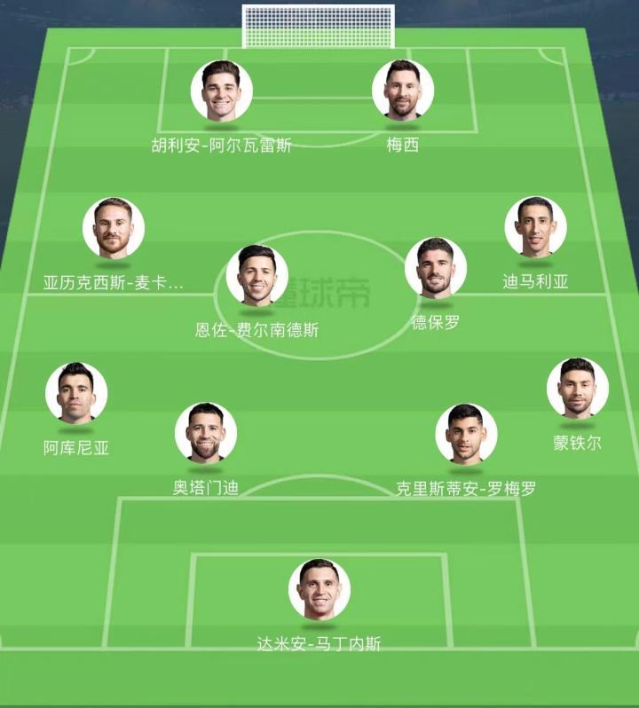 阿根廷共26人,无人停赛,全员可以出战。迪马利亚已经完全康复,只有帕普·戈麦斯脚踝疑似有伤,但应该没有太大问题。除下图首发外,莫利纳、劳塔罗·马丁内斯、利桑德罗·马丁内斯、塔利亚菲科、帕拉西奥斯和帕雷德斯也是阿根廷的常用人员。