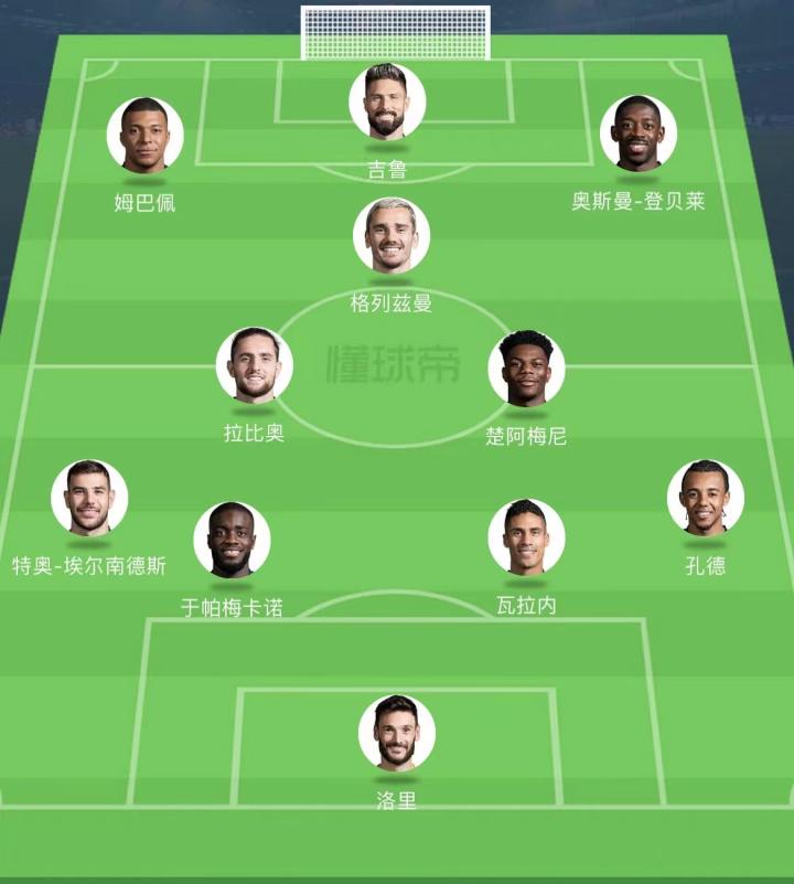 阿根廷和法国上次过招是在2018年世界杯,法国4-3淘汰了阿根廷。上届法国的实力凌驾于其他国家之上,整届赛事只落后过9分钟,就是落后于阿根廷。那场比赛,对如今的阿根廷是很有借鉴意义的,因为当时法国的战术阵型和现在基本一致,洛里、瓦拉内、帕瓦尔、格列兹曼、姆巴佩、吉鲁都在那场比赛中首发,奥斯曼·登贝莱在替补席。唯一的区别是如今的格列兹曼不像2018年踢影锋,而是踢前腰了。因为拉比奥和楚阿梅尼的防守并不能叫人放心,于是格列兹曼牺牲了进攻,增加了防守。