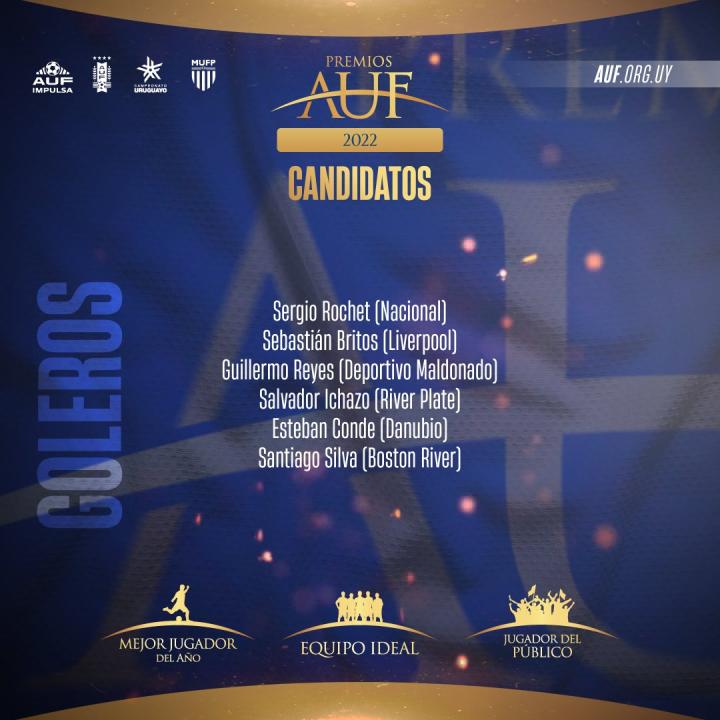 2022赛季乌拉圭甲级联赛年度颁奖候选名单,门将...乌拉圭足球频道 @懂球帝2022-12-15 18:452022赛季乌拉圭甲级联赛年度颁奖候选名单,门将篇。 入选者有乌拉圭现役国门塞尔吉奥-罗切特(民族)、曾在意甲效力的萨尔瓦多-伊查索(河床)、前国门埃斯特万-孔德(多瑙河)、塞瓦斯蒂安-布里托斯(利物浦)、吉列尔莫-雷耶斯(马尔多纳多)以及圣地亚哥-席尔瓦(波士顿河)。展开更多