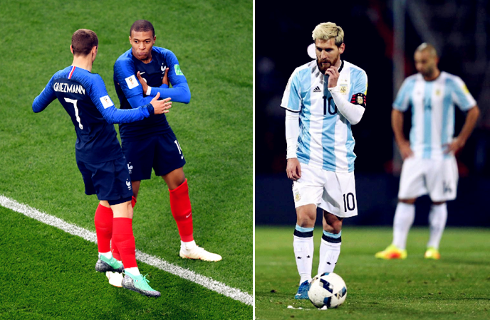 就在阿根廷因人才断档而陷入挣扎的时候,法国进入了继齐达内时代之后的又一个队史巅峰期。青年才俊如过江之鲫一般涌现,马夏尔、科曼、拉卡泽特、拉波尔特、拉比奥特和郎格莱等名角的落选甚至都未能引起波澜,法国媒体来不及为落选者鸣冤,就踌躇满志地开始投入到了勾勒两套阵容的极致体验中去了。
